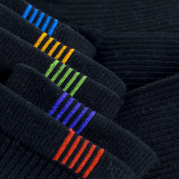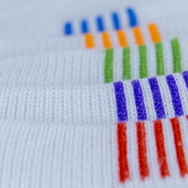Hverdagsfarver adskiller ét par sokker; begge fødder er markeret med markeringer.