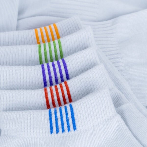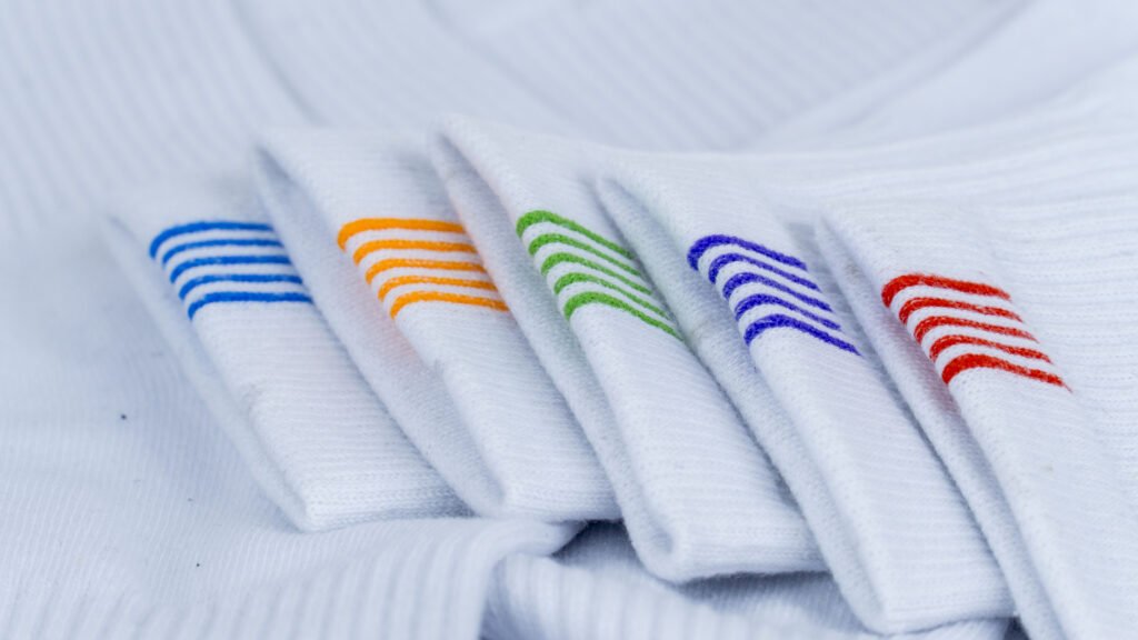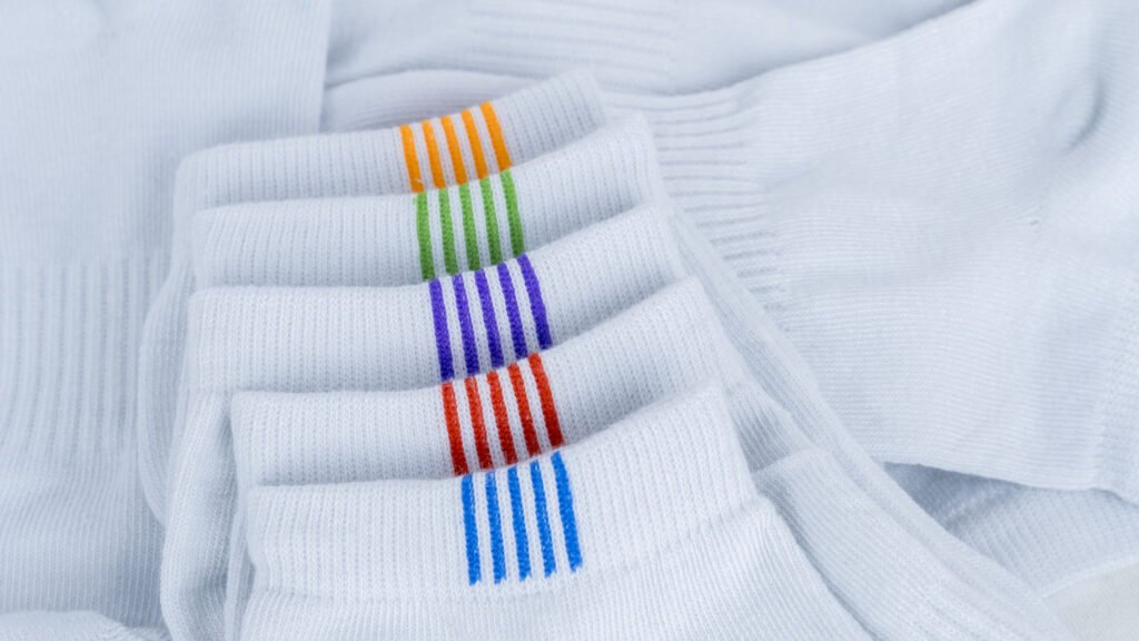 Hverdagsfarver adskiller ét par sokker; begge fødder er markeret med markeringer.